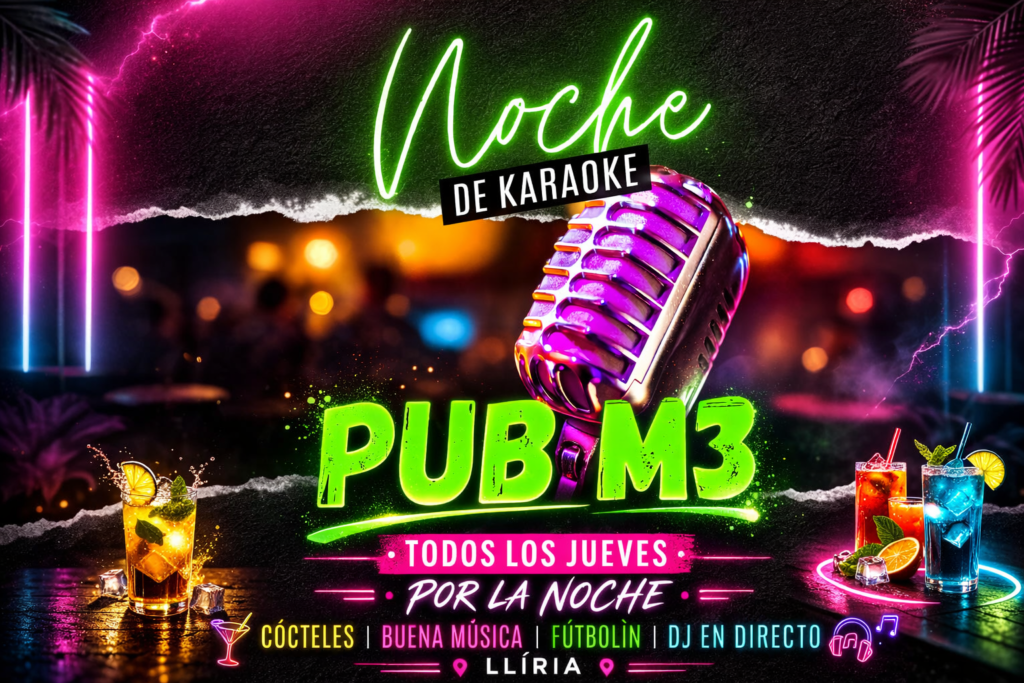 En el pub M3 cada noche es diferente, pero siempre inolvidable. Disfruta del fútbol en nuestro proyector gigante, compite en campeonatos de futbolín o déjate llevar con sesiones de DJ y música en directo. También tenemos nuestra hora feliz y varios días de promoción en diferentes productos.